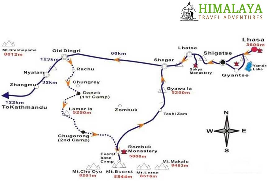 Day 12: Leaving Dza Rongbuk, we drive through the village of Chhosang, Phadrukchi, over Pang La, across Phung Chhu or Arun River, and into Dingri. O/N Camp/Guest House..